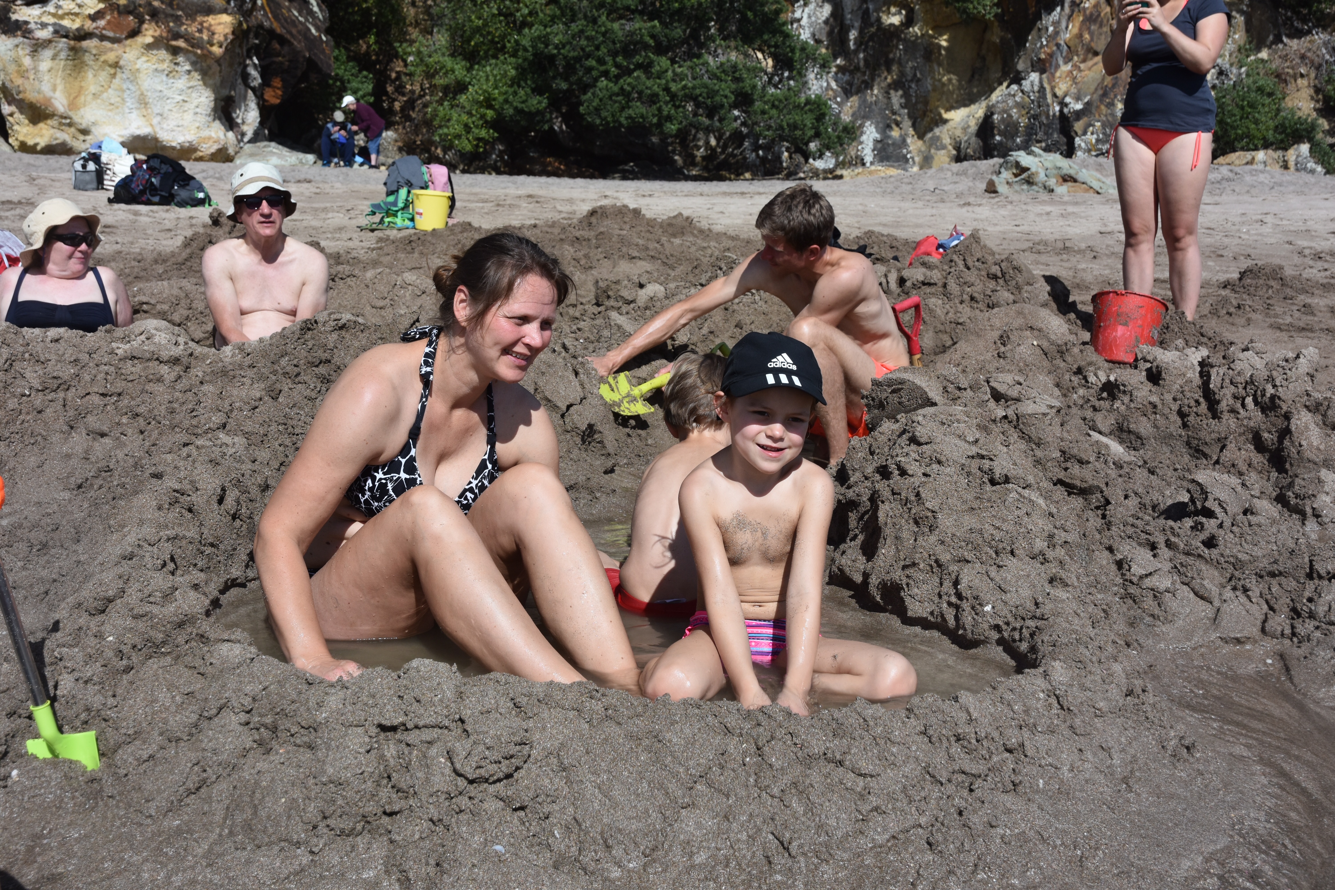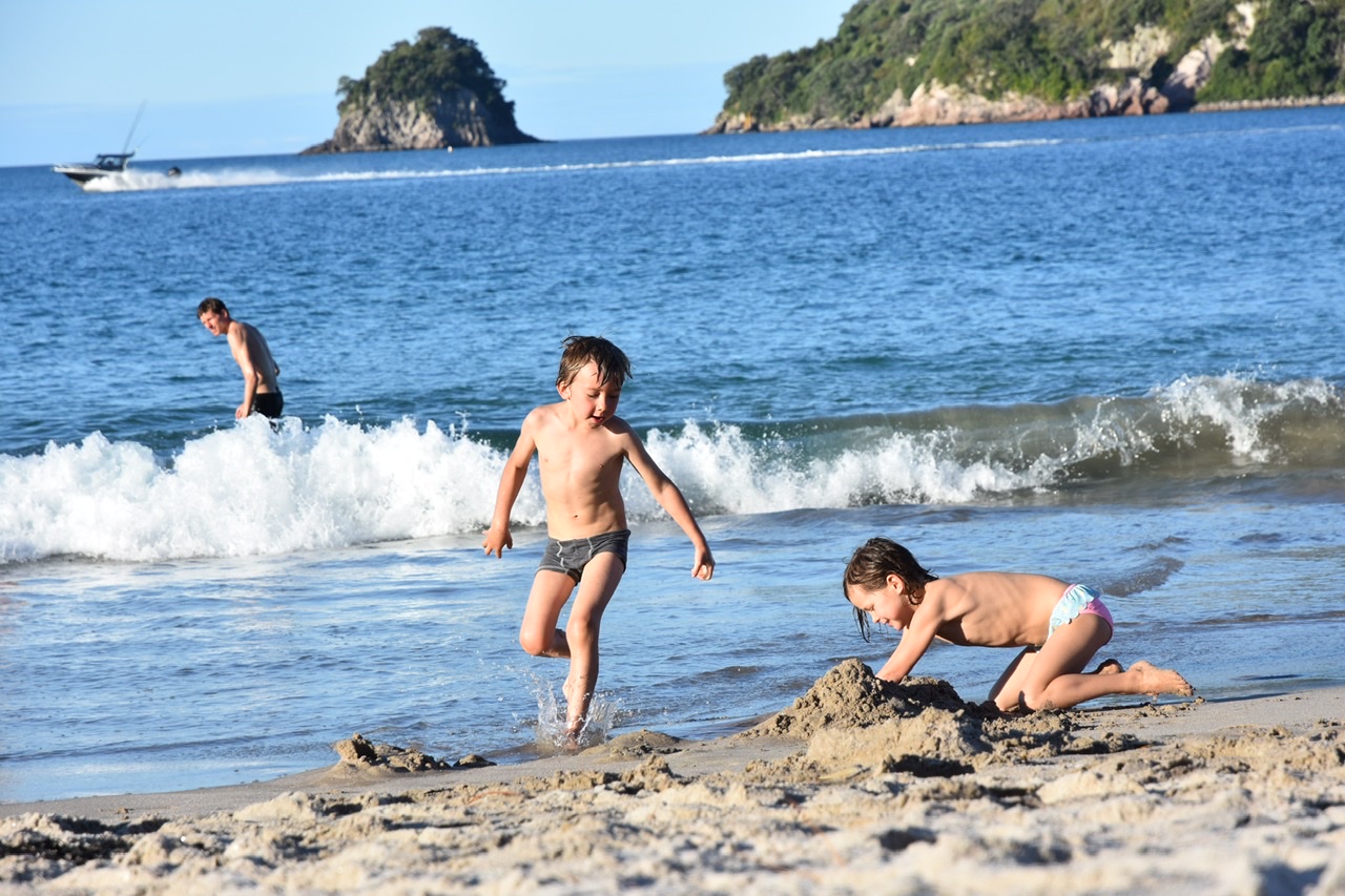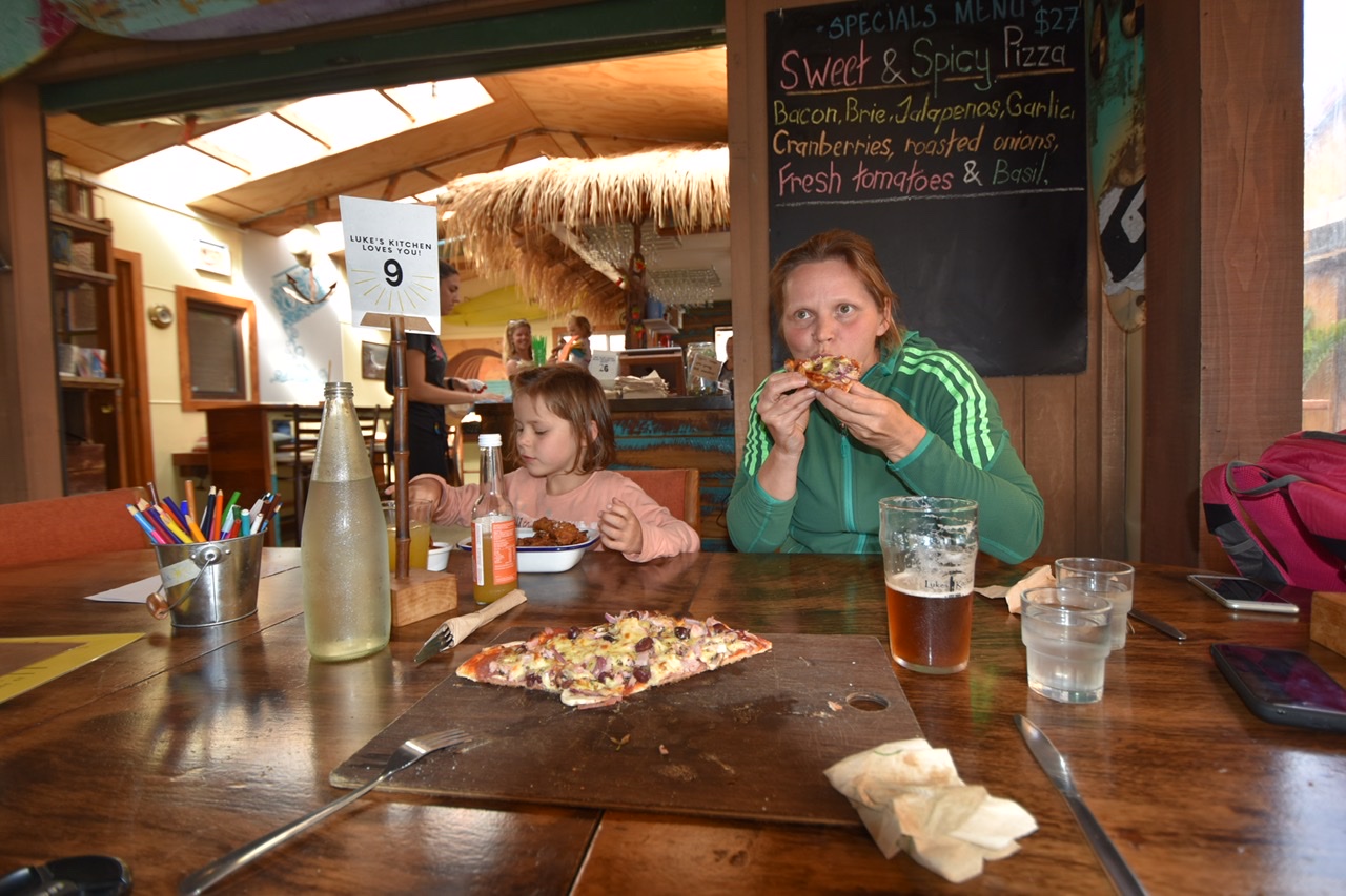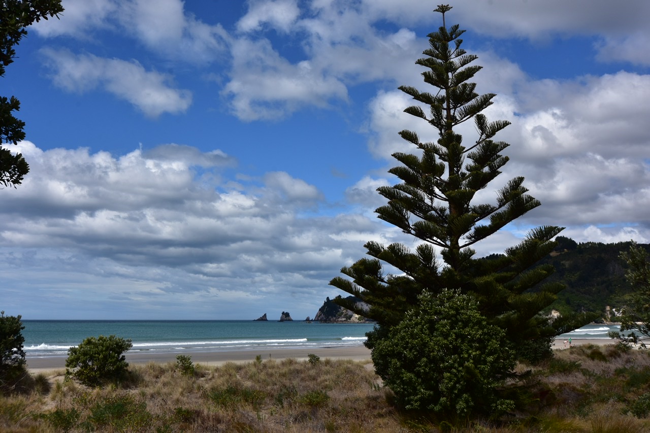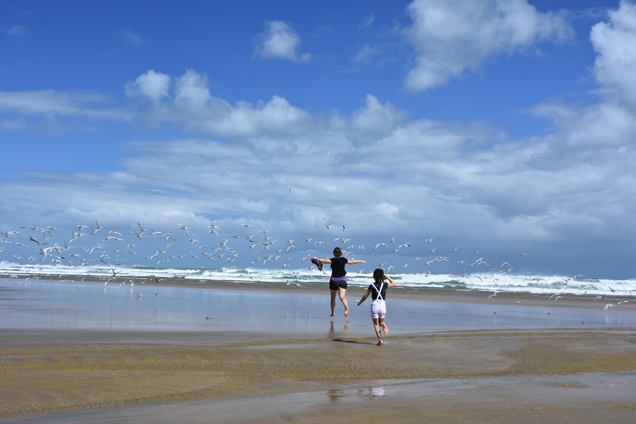 A surf hotspot with several small islands in front of the beach to please the eyes. Again the playground was huge and also entertaining for the bigger ones. We come across climbing and parcour elements, flying fox and shady trees (amongst these the iconic and beloved Norfolk Pine). All we could wish for.